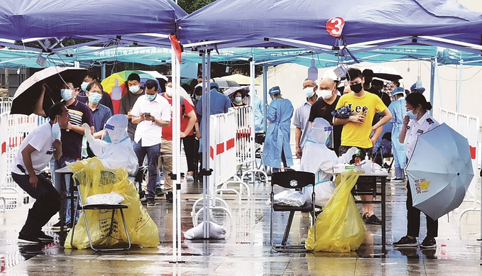 昨日,市民在南京市玄武區(qū)國際展覽中心檢測點(diǎn)有序進(jìn)行核酸檢測,做好疫情防控工作。本報(bào)記者 宋寧 攝