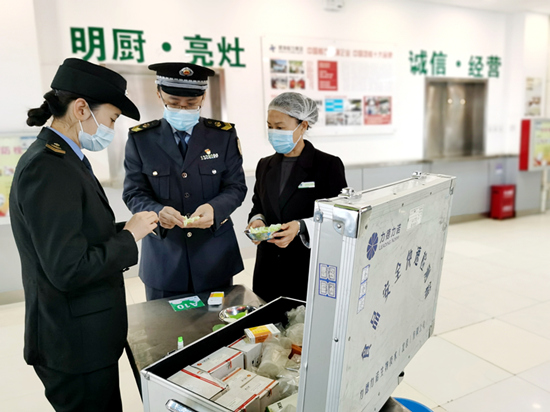 邢臺市市場監(jiān)管部門執(zhí)法人員到第十九中學(xué)后廚對食品進(jìn)行快檢。 黃濤攝