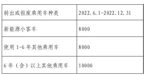 2022年6月至12月底,對于報廢或向京外轉出北京市注冊登記在本人名下1年以上的乘用車,在北京市汽車銷售企業(yè)購買新能源乘用新車,并在北京市上牌的個人消費者給予不超過1萬元/臺補貼。