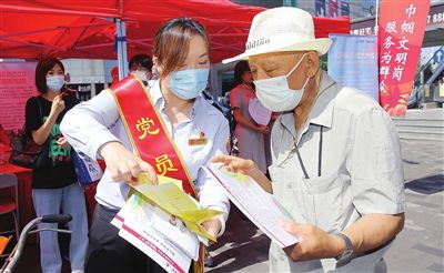 7月13日上午,天津市和平區(qū)濱江道樂賓百貨門前,市第十二次黨代會精神宣講展位彩旗招展,群眾絡(luò)繹不絕。來自衛(wèi)健、科技、政法、交通、公共服務(wù)、社會組織等方面50多個各級各類的為民服務(wù)窗口型“巾幗文明崗”“巾幗建功先進集體”志愿者齊聚,以學(xué)習(xí)宣傳貫徹市第十二次黨代會精神暨“迎盛會、鑄忠誠、強擔(dān)當、創(chuàng)業(yè)績”巾幗文明崗為群眾服務(wù)活動為主題,開展多項便民服務(wù)。