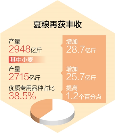 北京師范大學(xué)中國鄉(xiāng)村振興與發(fā)展研究中心主任張琦表示:“夏糧豐收離不開‘藏糧于地’‘藏糧于技’戰(zhàn)略的全面實(shí)施,今年夏糧播種面積達(dá)3.98億畝,比上年增加138萬畝,夏糧畝產(chǎn)比上年提高2.3公斤,單產(chǎn)提高對增產(chǎn)的貢獻(xiàn)達(dá)64%。”