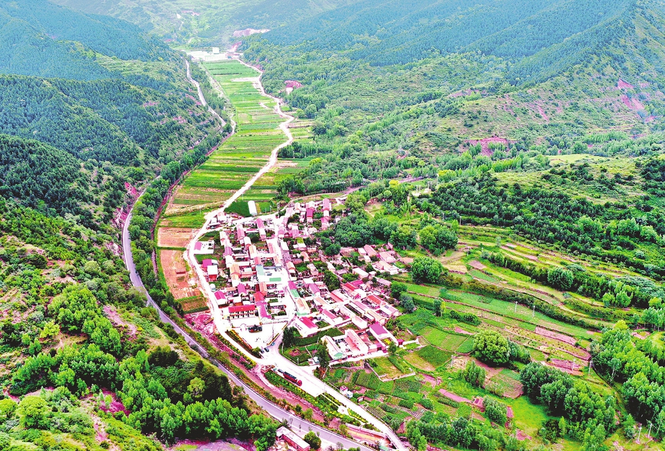 7月24日,俯瞰古交市邢家社鄉(xiāng)宋家莊村,道路蜿蜒,榛林蔥翠。近年來,該村依托當(dāng)?shù)刈匀画h(huán)境優(yōu)勢(shì),以經(jīng)濟(jì)聯(lián)合社占股60%、農(nóng)民承包地入股占40%的方式經(jīng)營(yíng),實(shí)現(xiàn)大果榛子規(guī)模化、集約化、產(chǎn)業(yè)化種植,舊日的撂荒地如今變成村民的聚寶盆。(記者劉通攝)