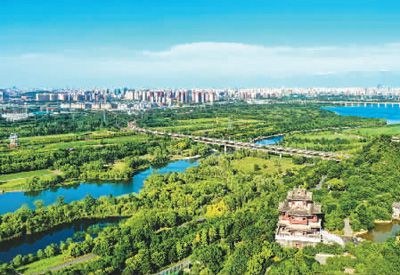 圖一:藍(lán)綠交織的永定河北京豐臺段。本報記者 賀 勇攝