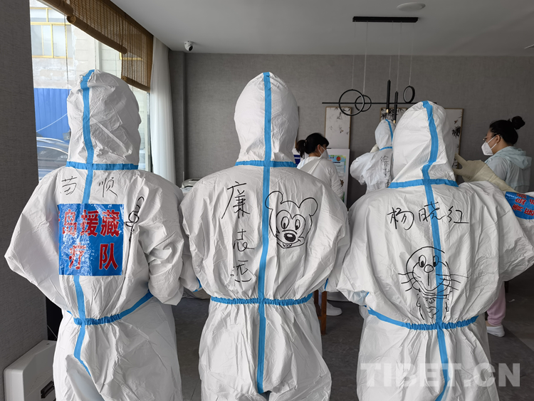中國西藏網(wǎng)訊 青島援藏醫(yī)療隊自8月17日進藏以來, 隊員們無論工作多累多難、高原反應有多難受,都沒有一句怨言,依然堅持在西藏自治區(qū)日喀則市戰(zhàn)“疫”一線。工作之余,來自青島市市立醫(yī)院本部ICU的鐘翔宇發(fā)揮出了她的“隱藏技能”——在醫(yī)療隊的“大白”身上畫上漫畫,用表情包背到身上的方式給隊友們加油鼓勁兒。身著漫畫“戰(zhàn)袍”的隊員們斗志昂揚,朝氣蓬勃,互相鼓勵幫助,完成了一天天的工作任務(wù)。而這些古靈精怪的漫畫,在戰(zhàn)“疫”一線也成了一道靚麗的風景線。(中國西藏網(wǎng) 記者/次旦拉姆 由桑珠孜區(qū)融媒體中心供稿)