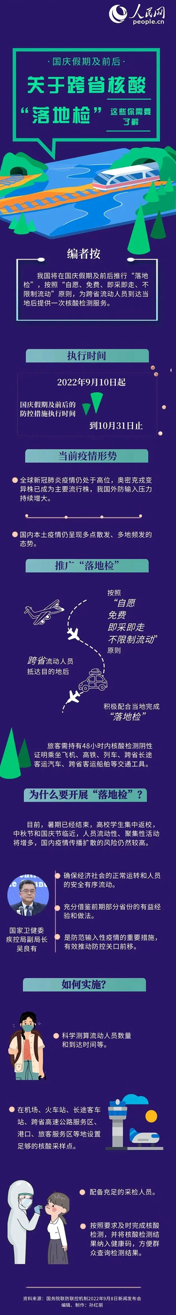 近7日內(nèi)有高中低風(fēng)險區(qū)和有本土陽性感染者所在縣(市、區(qū)、旗)旅居史人員、外省外市來(返)淮安人員,提前2天通過“淮上通”小程序或“i淮安”App進(jìn)行申報,并主動向所在單位、社區(qū)或酒店進(jìn)行報備。面向跨省、市流動人員在機(jī)場、高鐵站、高速出口等交通場站提供免費(fèi)“落地檢”服務(wù)。未進(jìn)行“落地檢”的外省外市來(返)淮人員,賓館酒店、社區(qū)要督促其抵淮后立即進(jìn)行一次核酸檢測。各級黨政機(jī)關(guān)、企事業(yè)單位要督促員工外出返淮后第一時間完成“落地檢”。近7日內(nèi)有外省外市旅居史的來(返)淮人員,在全市范圍內(nèi)憑行程碼核酸檢測一律免費(fèi)。