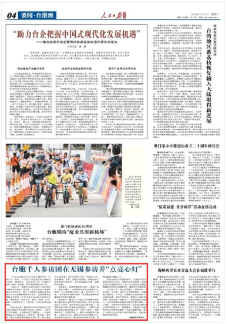 人民日報(bào)海外版|臺胞千人參訪團(tuán)在無錫參訪并“點(diǎn)亮心燈”