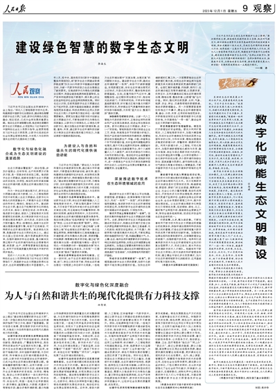人民日報(bào)整版探討:數(shù)字化、智能化為生態(tài)文明建設(shè)提供新路徑