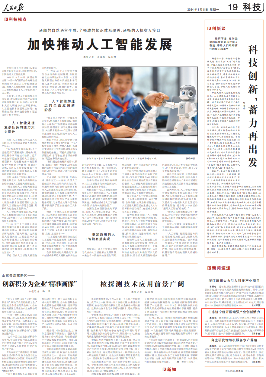 人民日報 | 山東濟(jì)寧經(jīng)開區(qū)增強(qiáng)產(chǎn)業(yè)創(chuàng)新活力
