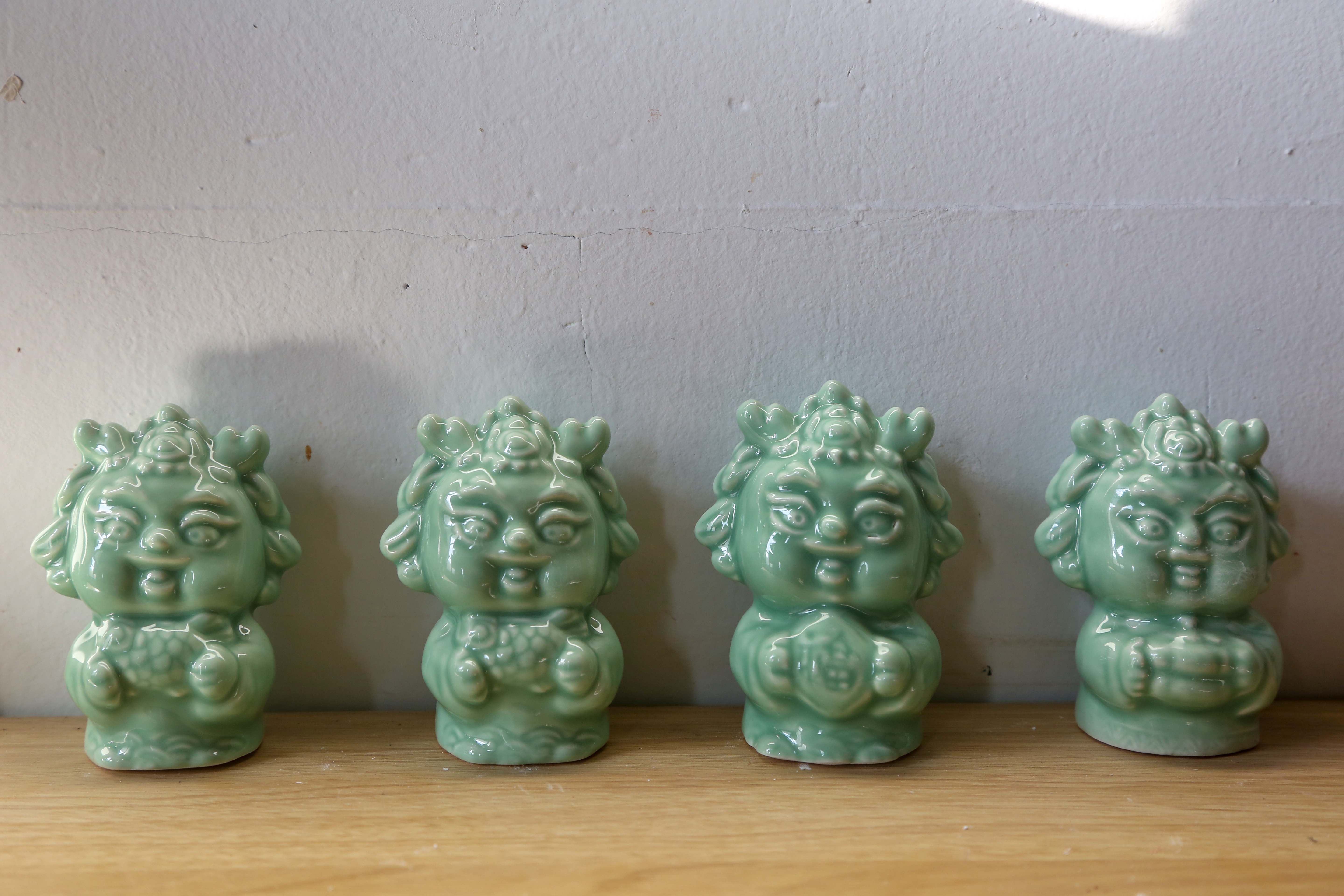 每年臨近春節(jié),史月明都會(huì)創(chuàng)作一些生肖元素的泥塑作品,用傳統(tǒng)藝術(shù)表達(dá)對(duì)新年的美好愿景。今年他以甲辰龍年為主題,創(chuàng)作了龍筆架、龍鳳呈祥擺件、大嘴龍裝飾品、小龍人掛件等泥塑作品,其中還融入了魚(yú)、福字、銅錢(qián)、元寶等極具美好寓意的元素。一件件制作完成的泥塑作品“龍”重登場(chǎng),形神兼?zhèn)?、惟妙惟肖,讓大家感受到了栩栩如生的龍?jiān)睾图橄矐c的年味。