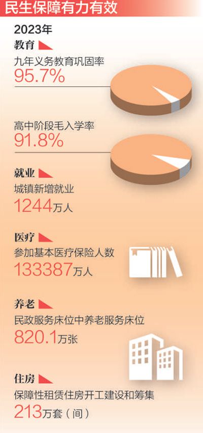 數(shù)據(jù)顯示,2023年,全國居民人均可支配收入實際增長6.1%,快于同期GDP增速;全國城鎮(zhèn)新增就業(yè)1244萬人,就業(yè)保持總體穩(wěn)定;疊加降價和醫(yī)保報銷,2023年協(xié)議期內談判藥為患者減負超2000億元……一張張民生清單,給百姓生活帶來了看得見、摸得著的可喜變化,不斷增強人民群眾的獲得感、幸福感、安全感。