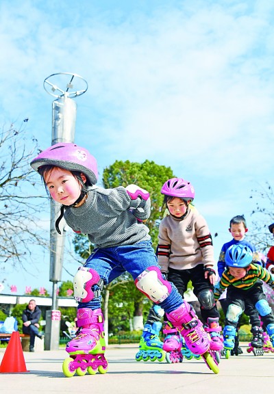 頭戴鮮艷頭盔,腳踩輪滑鞋,幾個(gè)四五歲的“小豆丁”正在教練指導(dǎo)下練習(xí)輪滑。起步、擺臂、穿越障礙,不小心滑倒了,也會(huì)一骨碌爬起來(lái)繼續(xù)向前。