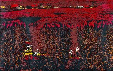 晁楣,1931年出生于山東省菏澤市,1958年跟隨十萬建設(shè)大軍來到北大荒。由于長期從事美術(shù)宣傳工作,到達墾區(qū)后,他開始在《北大荒畫報》和《北大荒文藝》兩刊編輯部工作,并利用閑暇時光進行版畫創(chuàng)作。他的《麥?!贰兜谝坏滥_印》等版畫作品在1960年于北京舉辦的“北大荒美術(shù)作品展覽會”上受到廣泛關(guān)注,“北大荒版畫”這一概念逐漸為人們所熟知,晁楣成為該版畫流派的創(chuàng)作先驅(qū)之一。