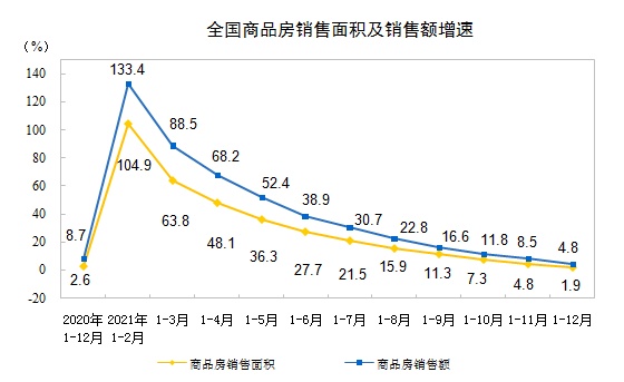 2021年商品房銷售面積同比增長(zhǎng)1.9%