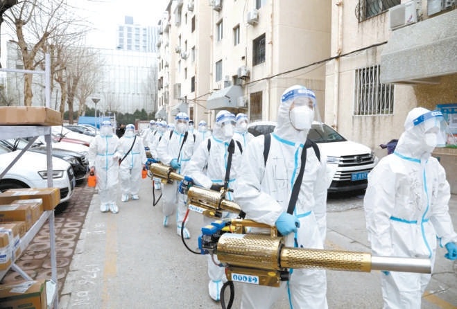 朝陽藍(lán)天救援隊(duì)22名隊(duì)員近日換上防護(hù)服,走進(jìn)六里屯甜水西園等3個社區(qū),為社區(qū)做防疫消殺,以減輕社區(qū)和物業(yè)工作人員的壓力。隊(duì)員們穿著防護(hù)服、佩戴口罩、安全帽、橡膠手套,手持70多斤重的彌霧機(jī)和藥箱,采用地毯式噴灑消毒的方式,對社區(qū)封(管)控區(qū)的道路、綠化帶等區(qū)域進(jìn)行細(xì)致消殺,確保小區(qū)內(nèi)無死角、無盲區(qū)。