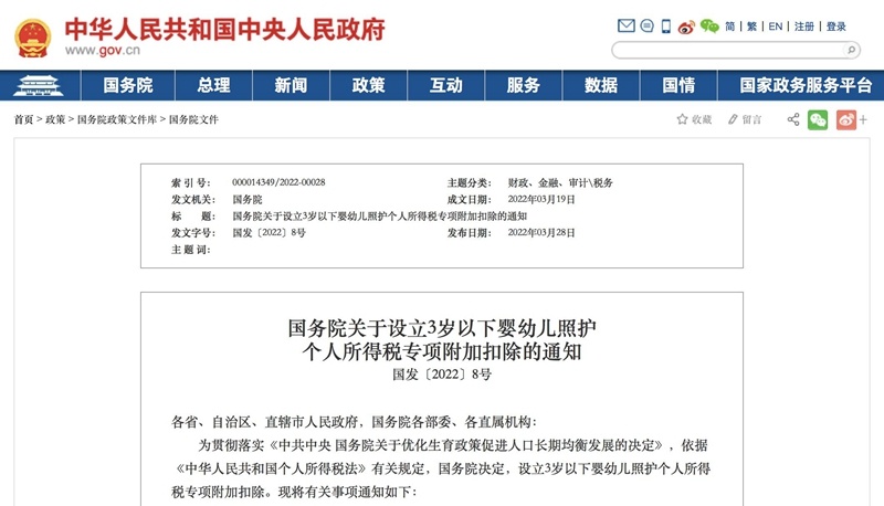 “嬰幼兒照護(hù)”扣除標(biāo)準(zhǔn)與“子女教育”一致