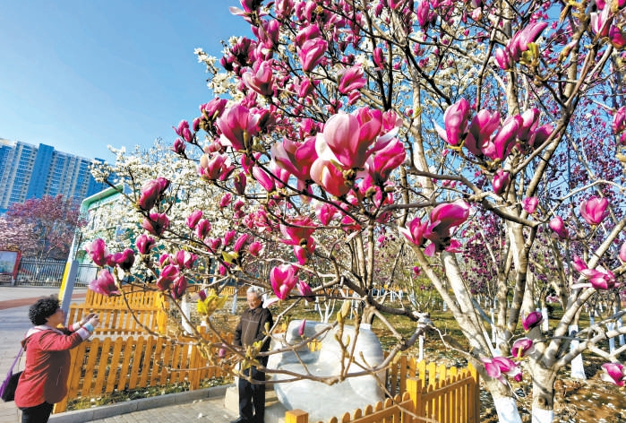 清明假期,市屬公園推出賞櫻花、梅花、玉蘭、杏花等30處、43個(gè)點(diǎn)位賞花踏青場所,引導(dǎo)游客分散賞花、錯(cuò)峰游園打卡留念。