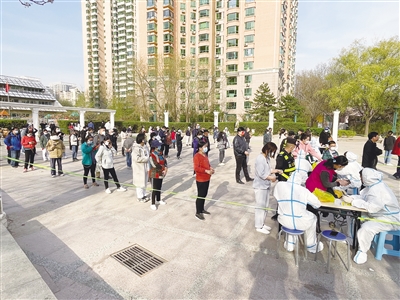 4月7日,海淀區(qū)中關村街道太陽園,小區(qū)居民在進行全員核酸檢測。新京報記者 浦峰 通訊員 李啟晗 攝