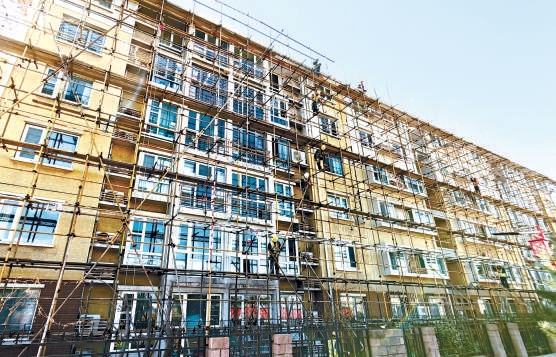 昨天(7日),北京市豐臺區(qū)南苑街道翠海明苑小區(qū)1號樓外墻保溫改造工程正在緊鑼密鼓地施工中。此次改造還提高了住房防風能力和隔音效果,預計4月底完工。 本報記者 劉平攝