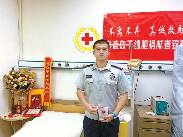 2021年5月,劉明航接到天津市紅十字會來電,他與一名2007年出生的血液病患者初配型成功,他毫不猶豫地回復(fù)愿意捐獻(xiàn)并前往天津,順利通過體檢和高分辨配型,并于同年6月完成捐獻(xiàn)。今年3月,他又接到北京市紅十字會的電話,患者病情出現(xiàn)了反復(fù),需要再進(jìn)行淋巴細(xì)胞移植鞏固治療?!爱?dāng)我接到需要二次捐獻(xiàn)的消息時,我心里其實沒有絲毫猶豫,因為我是一名消防員,聽到救人,是義無反顧的?!闭f服了母親,劉明航再次前往采集淋巴細(xì)胞的醫(yī)院。