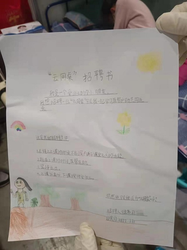 方艙中,8歲的小患者通過“蛤蜊電臺”招聘“云同桌”