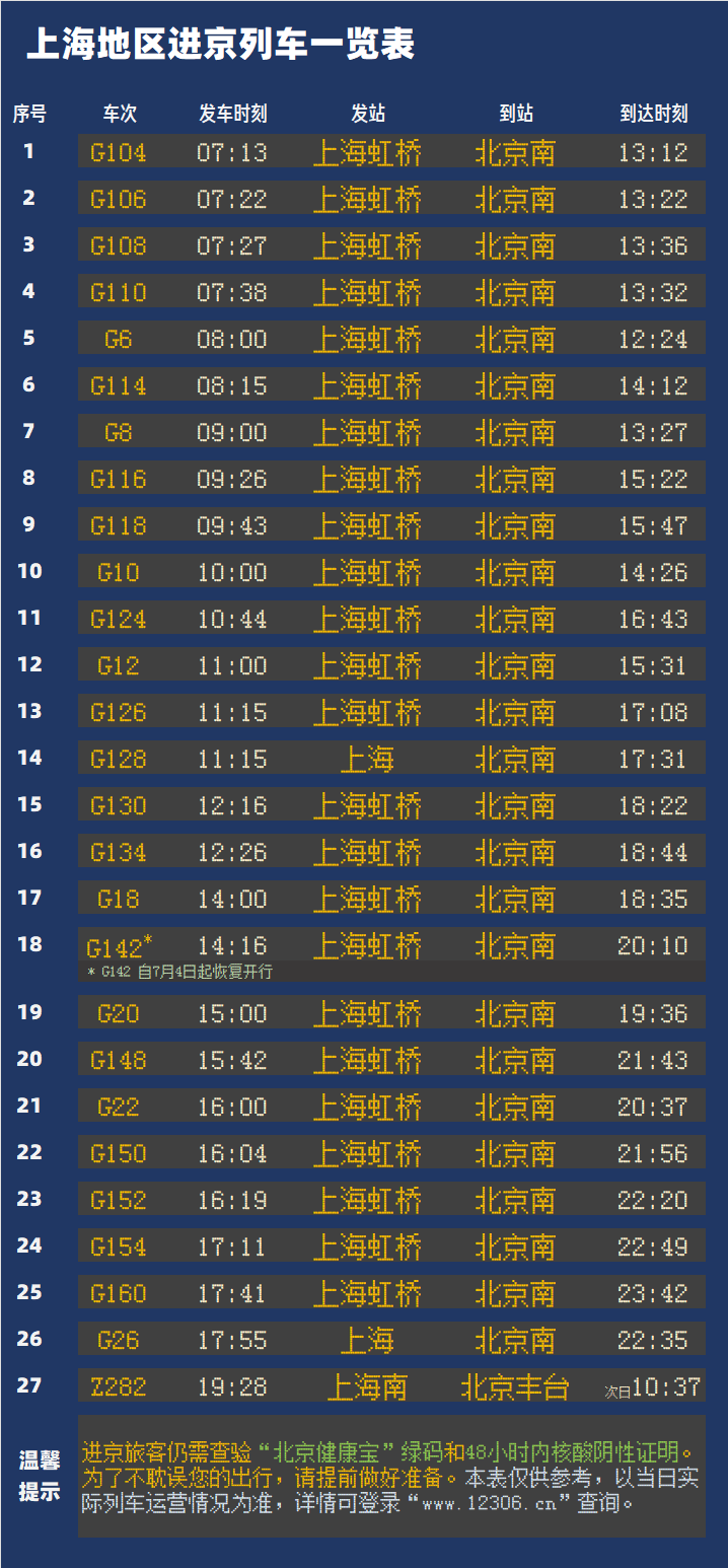 央廣網(wǎng)北京7月4日消息 據(jù)中國(guó)鐵路上海站消息,隨著上海疫情防控形勢(shì)持續(xù)向好,日前,鐵路部門逐步恢復(fù)開行上海地區(qū)進(jìn)京列車。