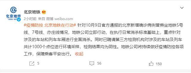 北京地鐵:確診病例軌跡所涉點位檢測結(jié)果均為陰性