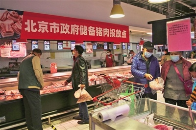 10月24日,物美超市大興黃村店,市民在“北京市政府儲(chǔ)備豬肉投放點(diǎn)”專(zhuān)柜選購(gòu)商品。 新京報(bào)記者 鄭新洽 攝