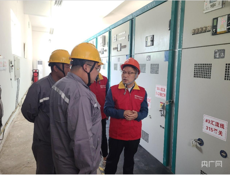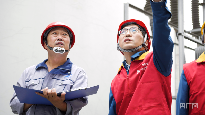 朱宗鋒(右側(cè))到變電現(xiàn)場了解情況(央廣網(wǎng)發(fā) 劉天睿攝)