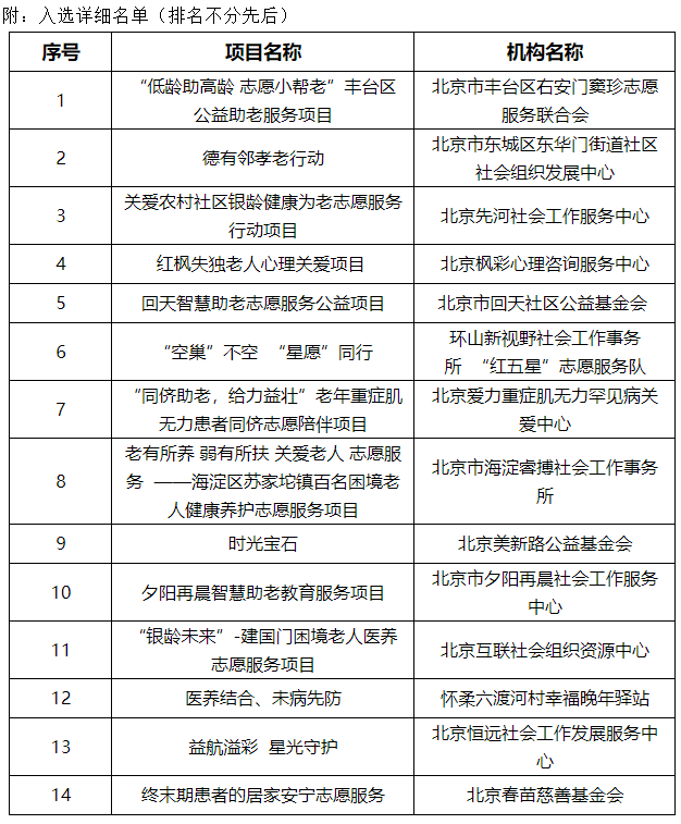 北京:14個養(yǎng)老志愿服務項目入選“銀齡伙伴”資助名單