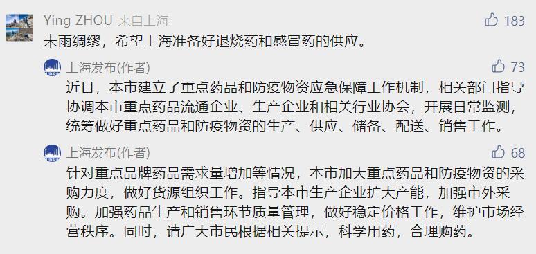 此外,“上海發(fā)布”微信公眾號還表示,近日,上海市建立了重點藥品和防疫物資應急保障工作機制,相關部門指導協(xié)調(diào)本市重點藥品流通企業(yè)、生產(chǎn)企業(yè)和相關行業(yè)協(xié)會,開展日常監(jiān)測,統(tǒng)籌做好重點藥品和防疫物資的生產(chǎn)、供應、儲備、配送、銷售工作。針對重點品牌藥品需求量增加等情況,上海市加大重點藥品和防疫物資的采購力度,做好貨源組織工作;指導上海市生產(chǎn)企業(yè)擴大產(chǎn)能,加強市外采購;加強藥品生產(chǎn)和銷售環(huán)節(jié)質量管理,做好穩(wěn)定價格工作,維護市場經(jīng)營秩序。同時,請廣大市民根據(jù)相關提示,科學用藥,合理購藥。