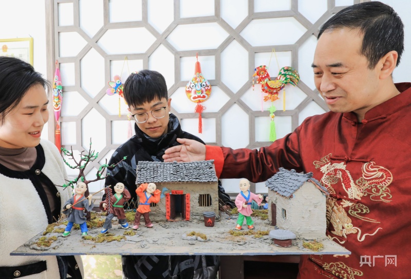 安秋平向游客介紹面塑作品《過大年》(央廣網發(fā) 吳庭棟 攝)