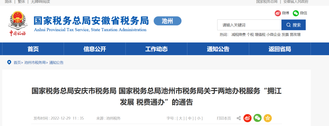 近日,為方便安徽安慶池州兩地納稅人繳費(fèi)人辦理跨區(qū)域涉稅事項(xiàng),落實(shí)安慶池州“一江兩岸擁江發(fā)展”規(guī)劃,進(jìn)一步優(yōu)化稅收營商環(huán)境。國家稅務(wù)總局安慶市稅務(wù)局、國家稅務(wù)總局池州市稅務(wù)局發(fā)布《關(guān)于兩地辦稅服務(wù)“擁江發(fā)展稅費(fèi)通辦”的通告》。
