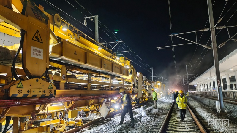 貴廣高鐵大列換枕(央廣網(wǎng)記者 黃璐璐 攝)