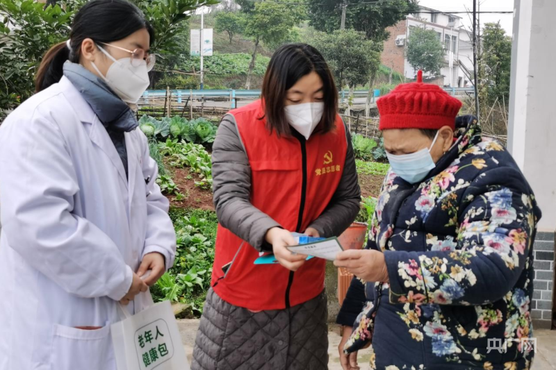 各個鎮(zhèn)組織村干部與醫(yī)護人員給農(nóng)村老人送上健康包(央廣網(wǎng)發(fā) 渝北區(qū)融媒體中心供圖)
