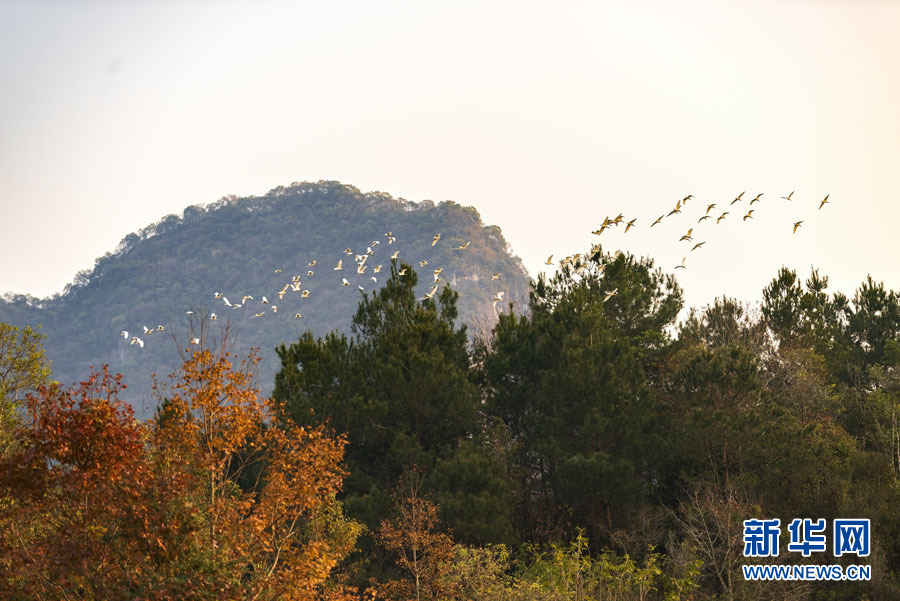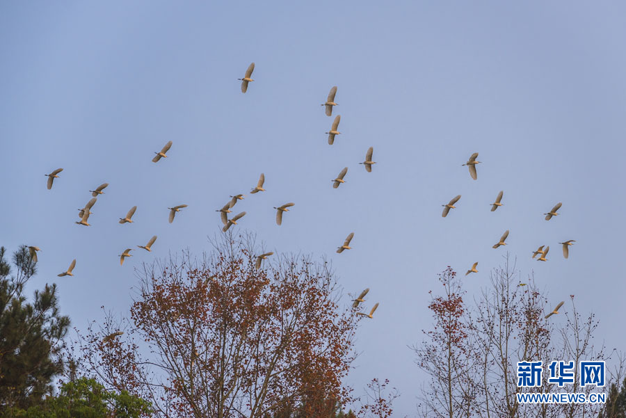日前,在廣西百色市德保縣城關(guān)鎮(zhèn)西讀村那西屯的田野上,成群白鷺或在覓食嬉戲、或在空中飛舞、或在樹(shù)梢停歇,與青山、綠水、紅楓構(gòu)成一幅美麗的自然生態(tài)畫(huà)卷。