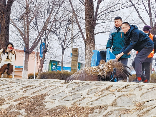“哇!”箱門打開,白尾海雕撲扇幾下翅膀沖出箱子振翅高飛,圍觀人群發(fā)出一陣驚嘆。2月17日下午2時(shí),北京市野生動(dòng)物救護(hù)中心、懷柔區(qū)園林綠化局野生動(dòng)植物保護(hù)管理中心10余名工作人員來(lái)到懷柔鎮(zhèn)紅軍莊村懷沙河段,將此前受傷獲救現(xiàn)已痊愈的白尾海雕放歸自然。