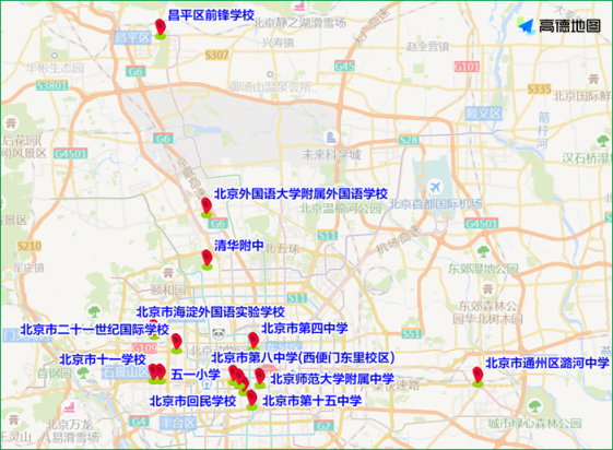 早間,中關(guān)村、廣渠門、什剎海、豐臺(tái)西南四環(huán)等學(xué)校較為集中的地區(qū)交通壓力突出。清華附中、北京四中、皇城根小學(xué)、十一學(xué)校、海淀外國(guó)語(yǔ)實(shí)驗(yàn)學(xué)校、師范大學(xué)第二附屬中學(xué)海淀學(xué)校、第十二中學(xué)科豐校區(qū)等校園周邊車流集中,校園門前道路容易出現(xiàn)行駛緩慢的情況。各中學(xué)周邊道路車流高峰將出現(xiàn)在7:00至7:30;小學(xué)周邊車流高峰普遍出現(xiàn)在7:30至8:00。