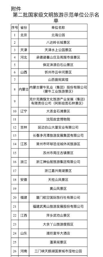 第二批國家級文明旅游示范單位名單公示 北海公園等66家單位上榜