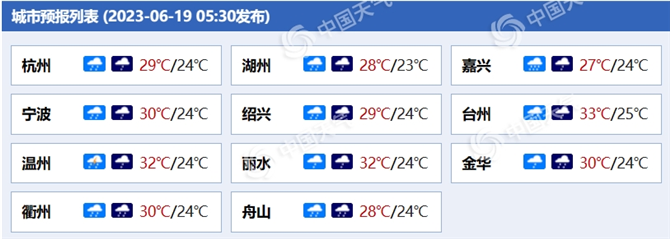 根據(jù)浙江省氣象臺預(yù)報(bào),今明兩天,浙江各地雨勢還將進(jìn)一步增強(qiáng),個(gè)別地區(qū)甚至可能有大暴雨現(xiàn)身。具體來看,今天,浙北和浙中西部地區(qū)多云到陰,上午起陰有陣雨或雷雨,部分中雨,局部暴雨;其他地區(qū)多云到陰,午后部分陰有陣雨或雷雨。最高氣溫: 浙北北部地區(qū):27-29℃; 東南沿海地區(qū):32-34℃; 其他地區(qū):30-32℃。