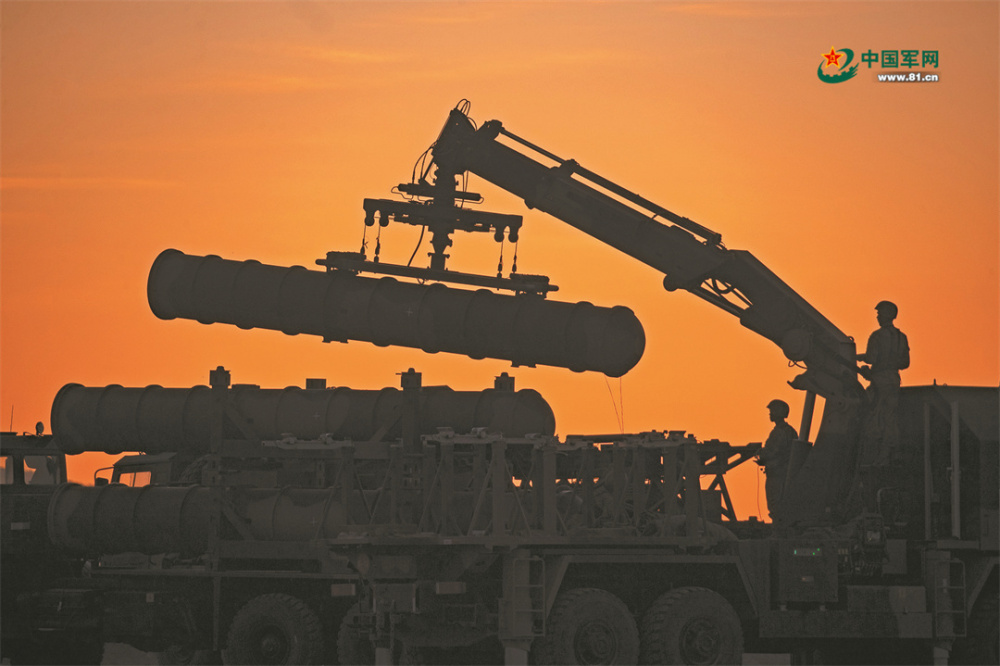 空軍地導(dǎo)某旅官兵快速吊裝導(dǎo)彈,開展夜間空地對(duì)抗演練。向坤 攝