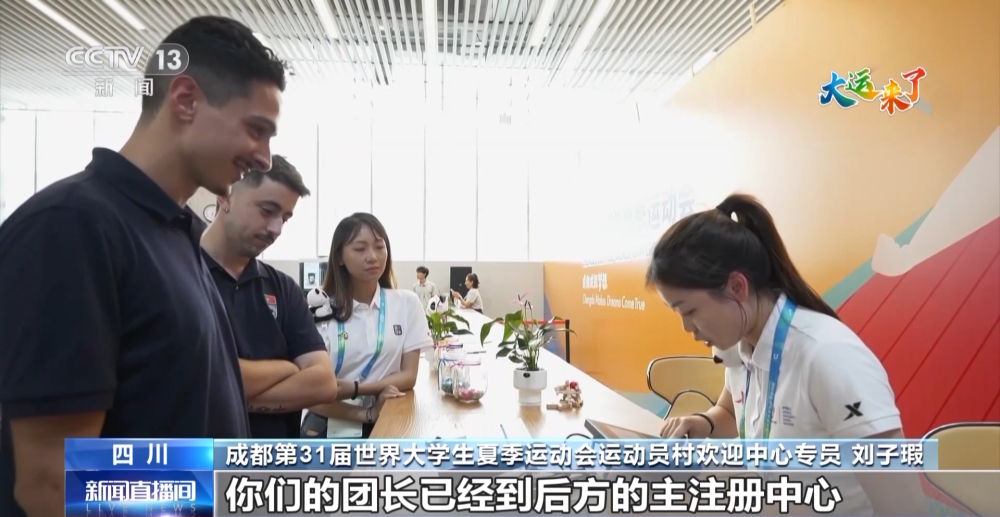 成都第31屆世界大學生夏季運動會運動員村歡迎中心專員 劉子瑕:你們的團長已經到后方的主注冊中心為你們辦理身份注冊卡,之后你們便會拿到身份注冊卡就可以在大運村內通行。