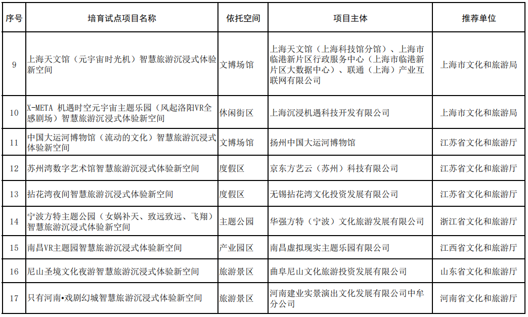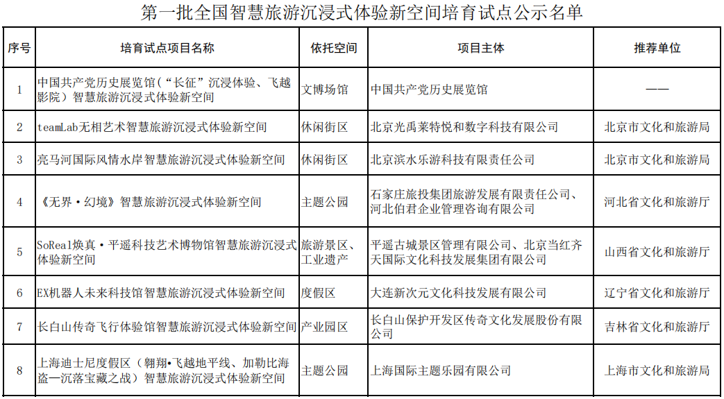 全國(guó)首批24個(gè)智慧旅游沉浸式體驗(yàn)新空間培育試點(diǎn)公示