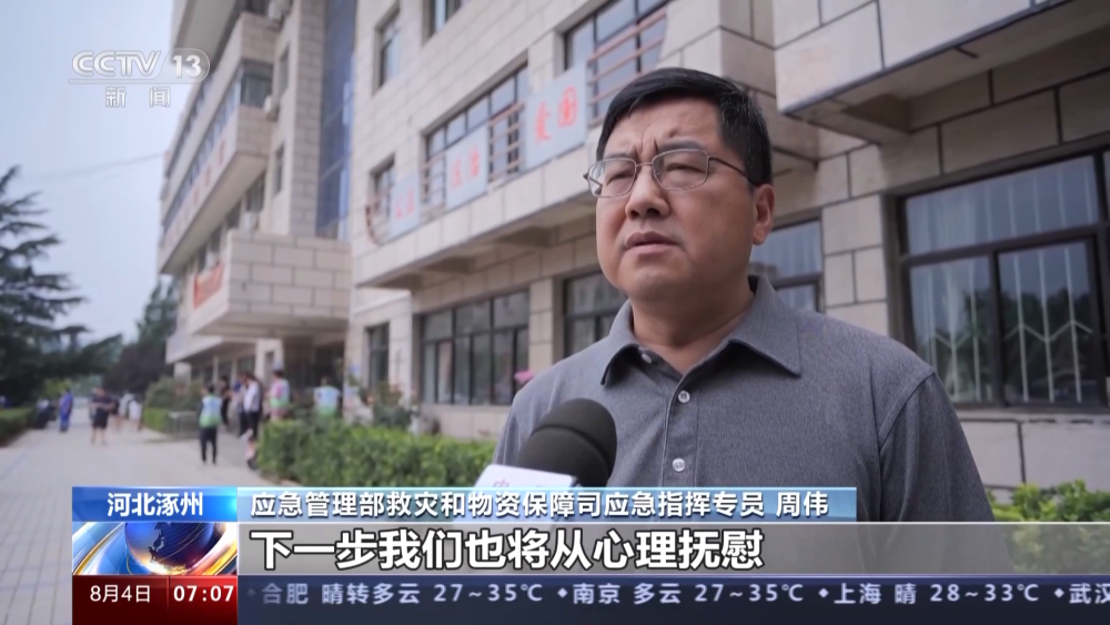 河北職教中心安置點校方負責人 張劍鋒:在這住宿的群眾絕大多數(shù)是清涼寺和碼頭兩個鄉(xiāng)鎮(zhèn)的?,F(xiàn)在這些群眾吃、住、生活物資有保障,飲水有保障。我們還有足量的被褥,能夠隨來隨時保障。