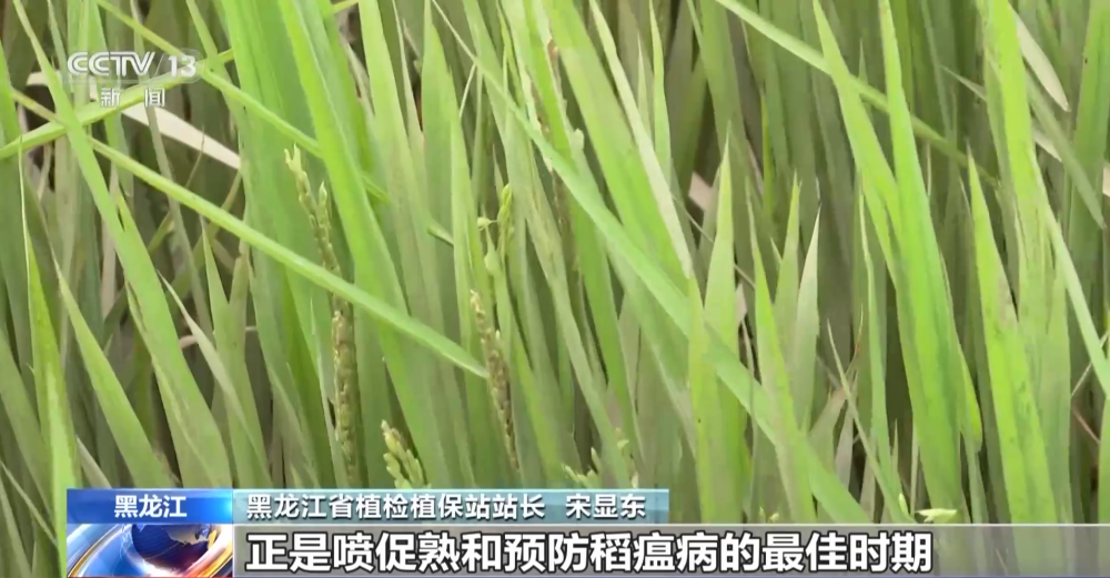 黑龍江省植檢植保站站長 宋顯東:像這塊地迫切需要促熟了,正是噴促熟和預防稻瘟病的最佳時期。上面這幾個功能葉還相當不錯,因為水稻產(chǎn)量形成最重要的還是上面那三四個葉。