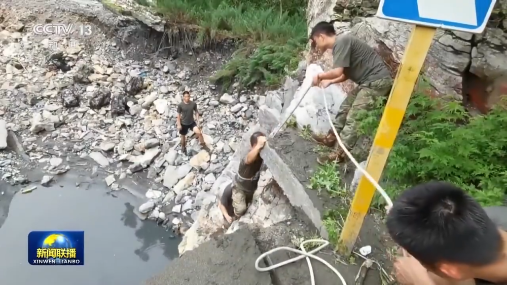 某抗洪搶險(xiǎn)應(yīng)急通信保障任務(wù)分隊(duì)指揮員 于林平:準(zhǔn)備上去的時(shí)候,下面的那個(gè)路突然塌方了,我整個(gè)人就像吊單杠一樣,整個(gè)給我拉直了,然后我的戰(zhàn)友把我拉上來了。下面全部是碎石,水流非常湍急,非常有可能會(huì)被沖下去。