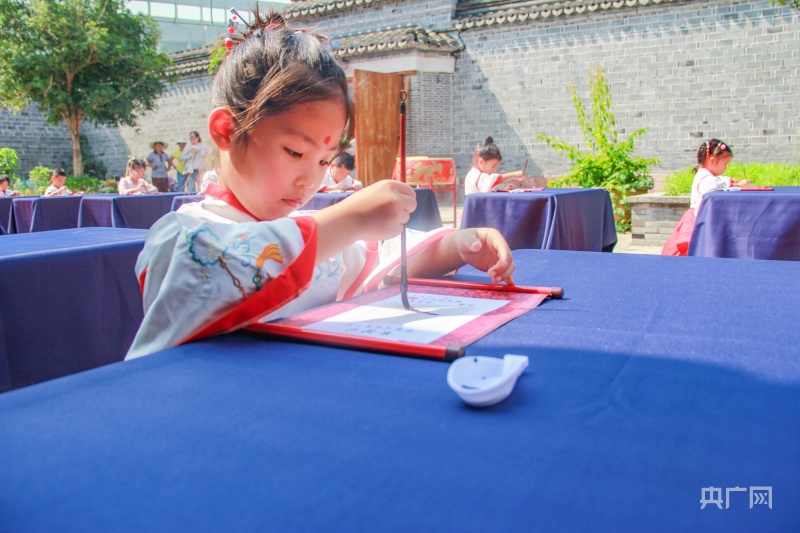 央廣網(wǎng)寧波8月22日消息(記者 張雯雯 通訊員 方舟 安雨晨)樹影婆娑,古韻悠揚,鼓聲清越,翰墨飄香。8月22日,在新學(xué)年來臨之際,寧波市江北區(qū)莊橋街道馬徑村文化禮堂舉行了一場別開生面的“開筆啟智慧 閱讀潤人生”開筆禮?;顒釉诿颗e行,20多名即將上小學(xué)的小朋友身著漢服,在開筆儀式中感受中國傳統(tǒng)文化的魅力。