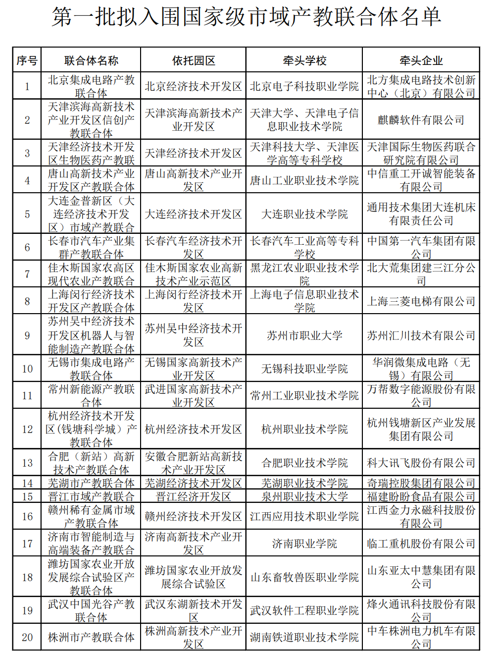 第一批擬入圍國家級市域產(chǎn)教聯(lián)合體名單(教育部官方網(wǎng)站截圖,央廣網(wǎng)發(fā))