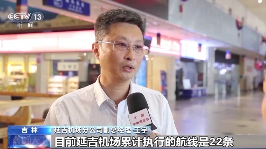延吉機場分公司副總經理 王宇:目前延吉機場累計執(zhí)行的航線是22條,國內航線18條,國際航線4條。每周能達到對韓國的航線84班,對韓國的航班量位居東北的第一位。