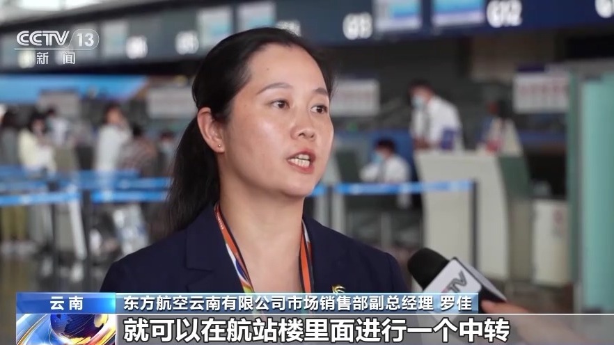 東方航空云南有限公司市場銷售部副總經理 羅佳:旅客不需要出隔離區(qū),就可以在航站樓里面進行中轉,并且行李直掛,行李從始發(fā)站開始不用二次提取。