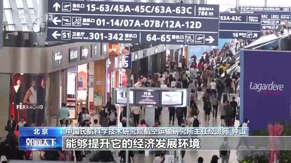 中國民航科學技術研究院航空運輸研究所主任經濟師 鐘山:通過我們這種“干支通、全網聯(lián)”以及通程航班的模式,能夠讓我們三、四線城市的旅客,融到整個國家的經濟社會建設中,能夠提升它的經濟發(fā)展環(huán)境。特別是從統(tǒng)一大市場的開放角度來看,這個是最終能夠促進我們國內市場的銜接。